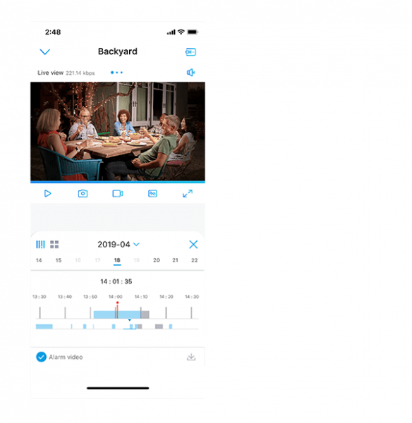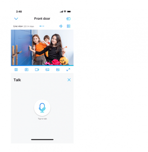 Camera va porni automat atunci când te vei conecta la ea pentru o transmisiune live. Prin accesarea de la distanță poți să ajungi în mijlocul familiei tale, chiar dacă fizic ești la distanță. Camera dispunând de microfon și difuzor poți ca, în timp ce îți vezi familia, să și vorbești cu ea.